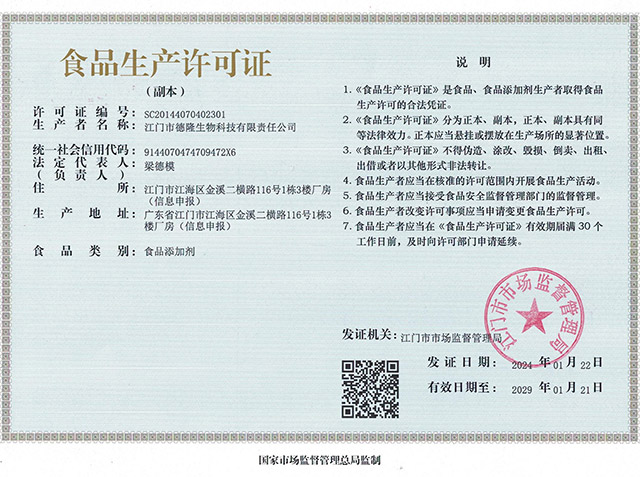 ☆2021年6月18日公司獲取食品生產(chǎn)許可證(SC201447070400275)。